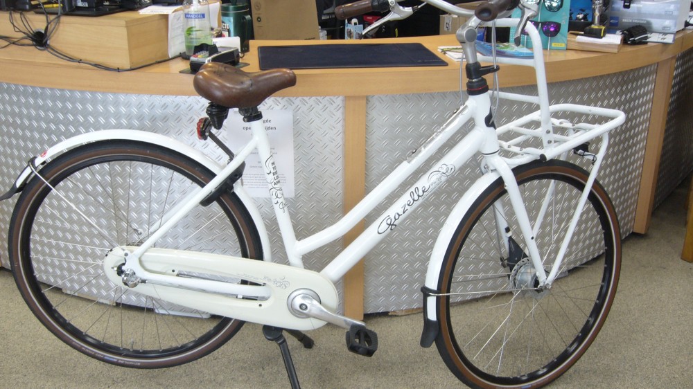 Tweedehands Gazelle MissGrace, damesfiets, maat 54, 3 versnellingen, rollerbrake-remmen, stuurslot, dubbele standaard, naafdynamo voor, batterij-verlichting achter, geen bagagedrager!
